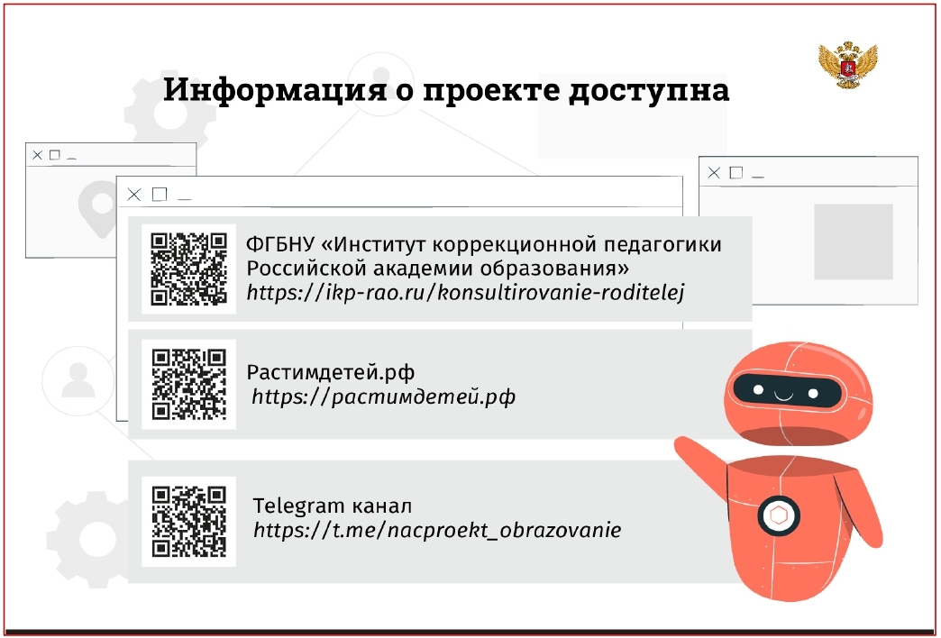 Нацпроект "Образование" помогает найти ответы на важные вопросы родителям и тем, кто хочет ими стать. Вы можете бесплатно получить психолого-педагогическую, методическую, консультационную помощь. Консультант поможет найти решение проблем ребенка и подскажет, куда обратиться за помощью.