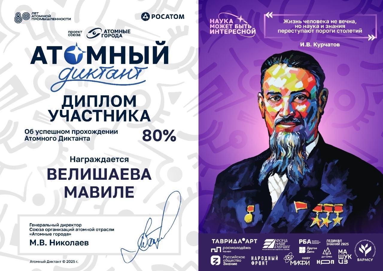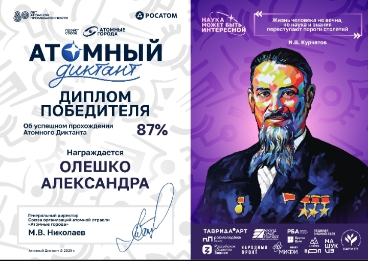 Учащиеся МБОУ «Гимназия им.Андреева Н.Р.» приняли участие в Международном просветительском проекте «Атомный диктант». Проект ориентирован на популяризацию атомной отрасли и формирование образа доступных естественно-научных знаний.