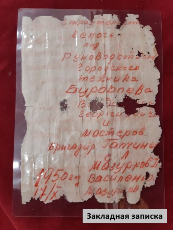 Закладная записка, найденная в ходе реконструкции памятника крымским партизанам в г.Бахчисарай в 2020 году.