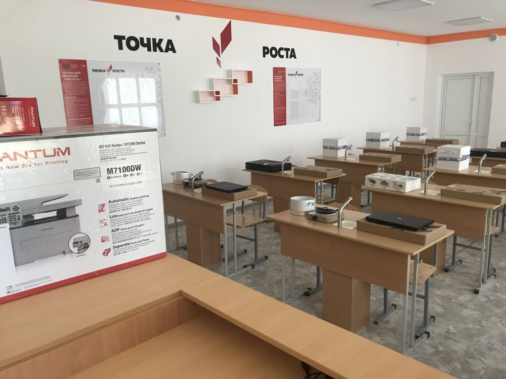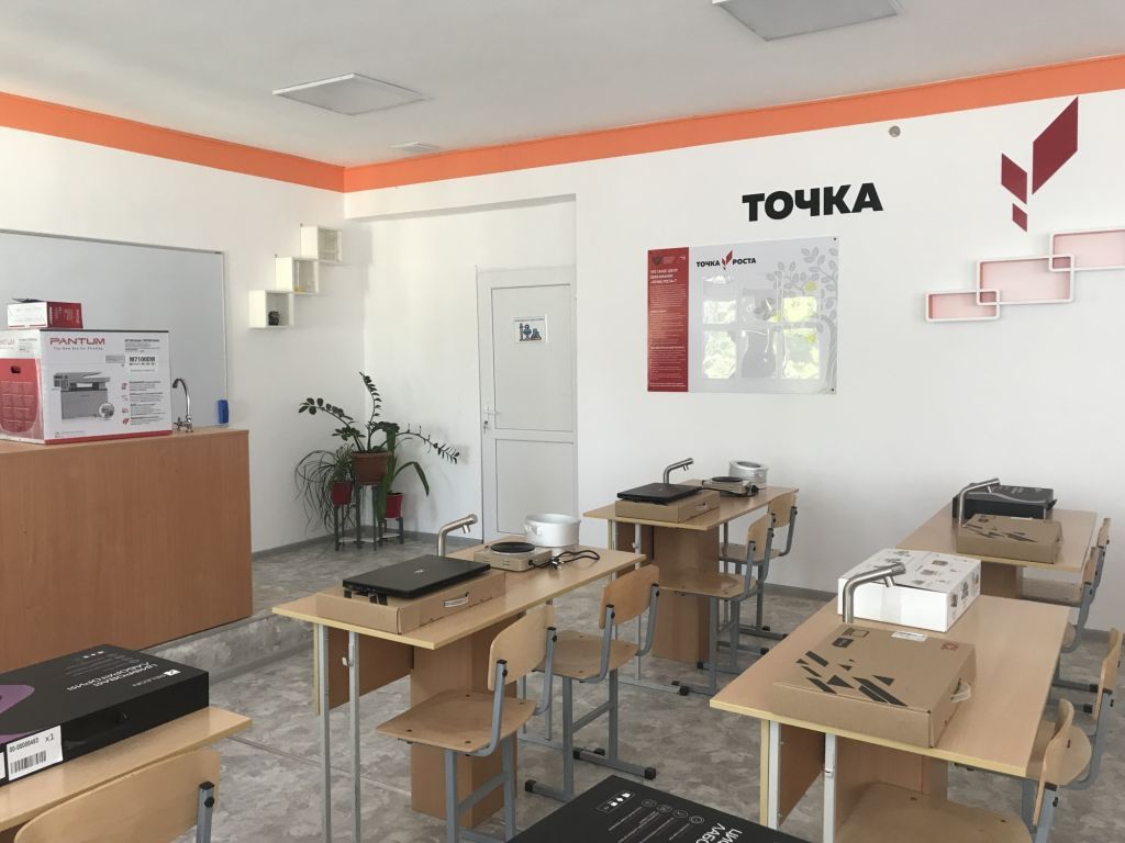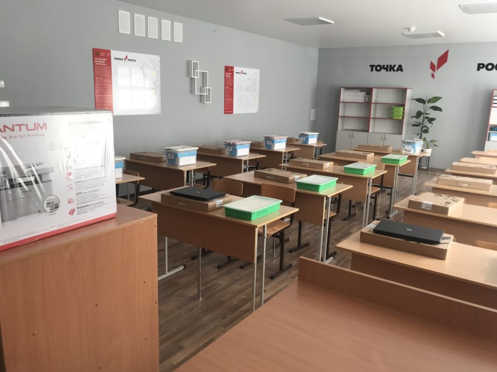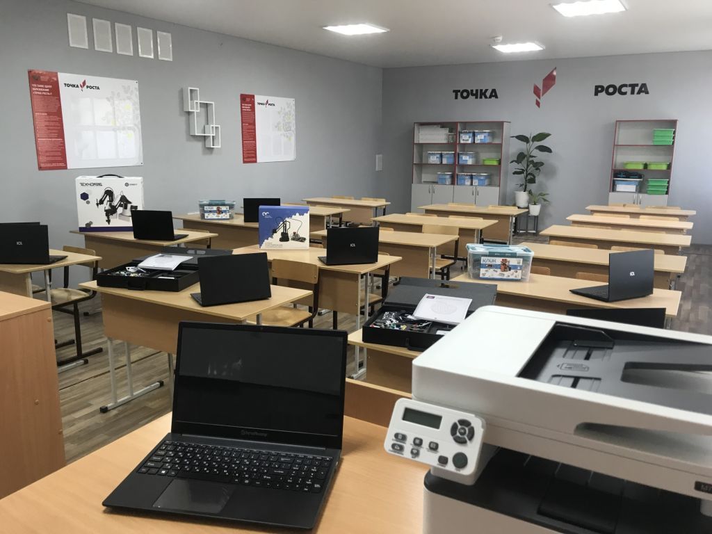Центр состоит из 2-х помещений, в которых проведен качественный ремонт. Оформление кабинетов выполнено с использованием фирменного стиля Центра «Точка роста» (брендбука).
